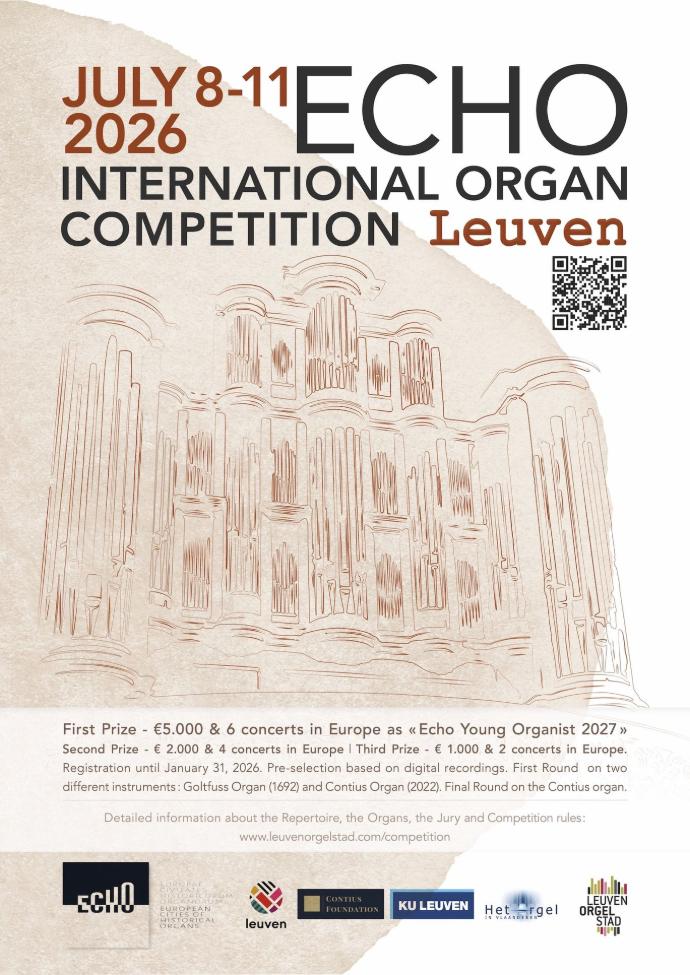 From 8 to 11 July 2026, Leuven will host the next ECHO “Jehan Crinon” Organ Competition, featuring performances on two exceptional instruments: the Goltfuss (1692) and Contius (2022) organs.
